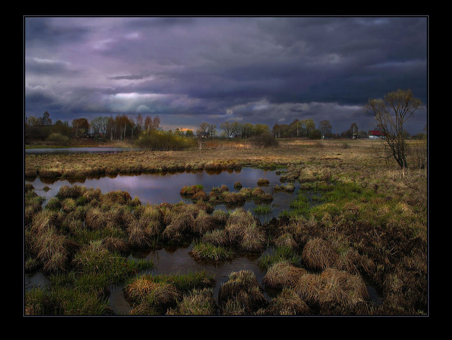 On our site you can pick up similar landscapes using tags: clouds, evening, swamp, hdr, hummocks